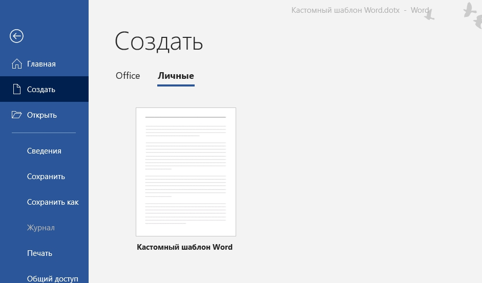 Чтобы создать новый документ Word на основе ранее сохраненного, персонального шаблона: