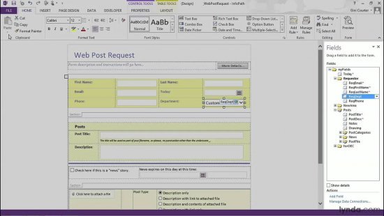 - разработка форм при помощи интерфейса ленты. Все элементы и команды на ленте размещены на вкладках, которые соответствуют задачам, относящимся к определенным операциям. Это позволяет осуществлять более оперативную настройку форм и применять заданные параметры на практике