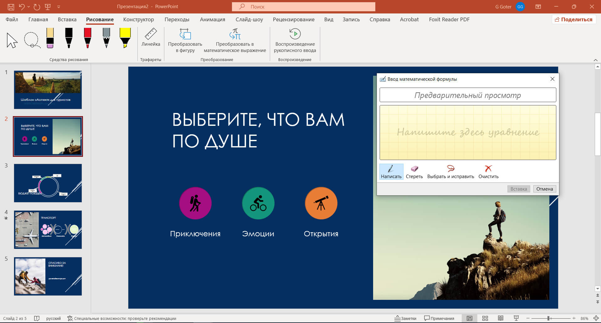 - теперь слайд для объекта рукописного ввода обзавелся соответствующей анимацией при воспроизведении рукописного ввода. Теперь редактор или автор документа PowerPoint 2021 вправе применить новую анимацию Перемотка или Воспроизведение к рукописным текстовым фрагментам и получить на выходе эффект рисования буквально в самой презентации. Также вы можете отладить темп анимации таким образом, чтобы она воспроизводилась медленнее или быстрее в зависимости от ваших желаний