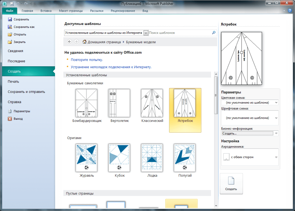 - реализация упрощенного доступа к сетевым шаблонам, созданным как с помощью других пользователей Publisher и размещенным на официальном портале Microsoft Office, так и созданным в организациях